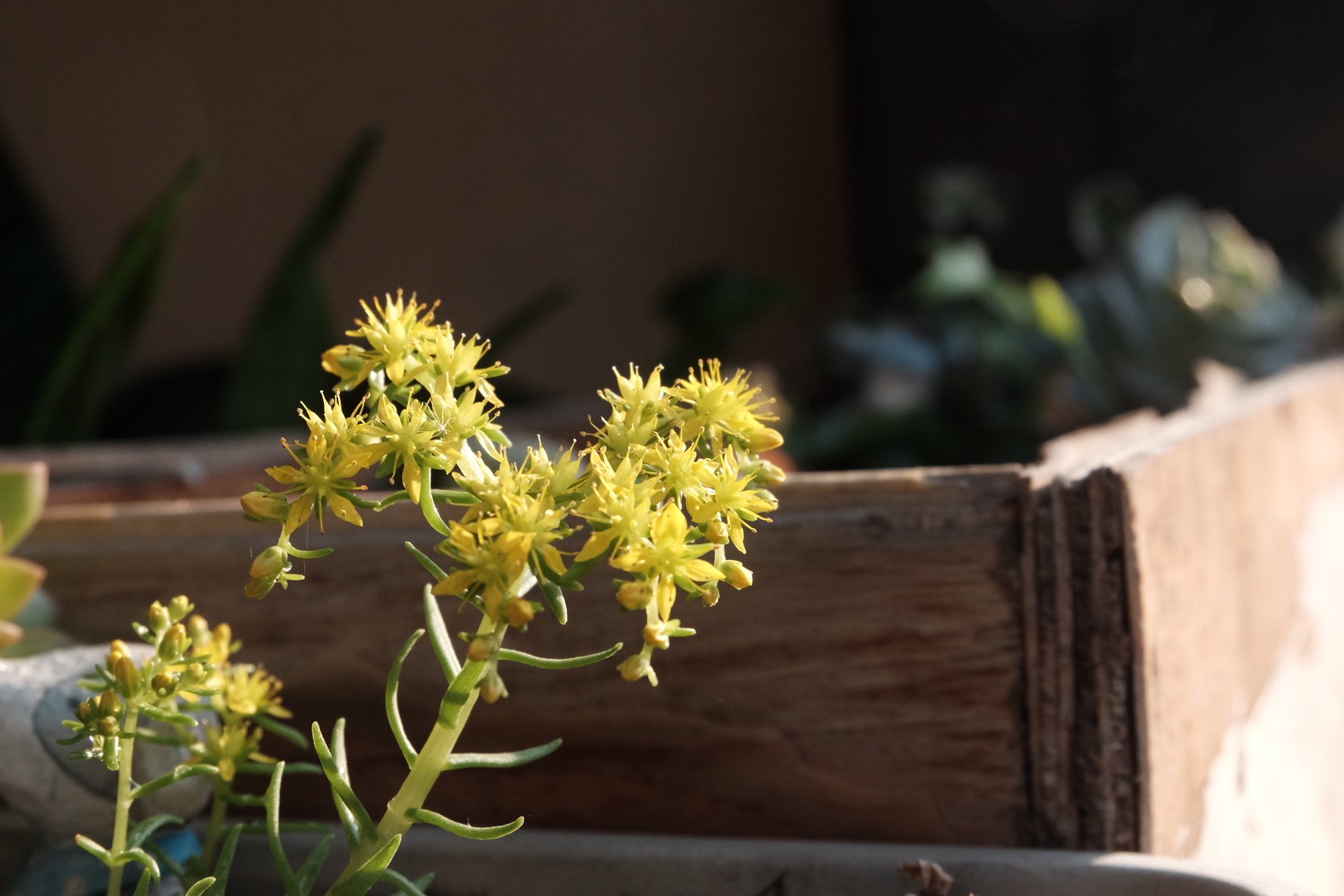 薄雪万年草?!忘记叫啥,就是路边上那种匍匐在花坛里的那种小多肉。也是随手从哪里折一根回来的,小半年时间,满满一大盆,居然还开出一丛丛黄色的小花。有时候,这种特别平易近人的植物,也会有特别光彩的那一面。适合人慢下来,静静地欣赏。