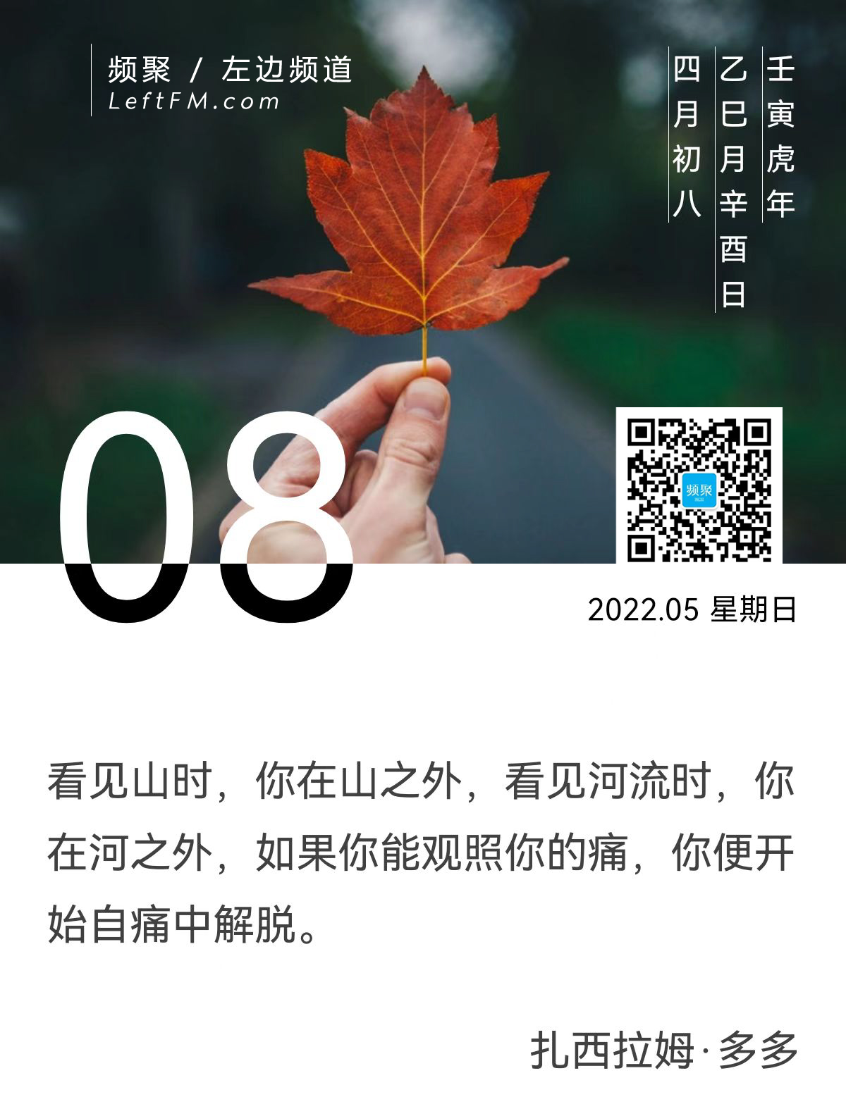 看见山时,你在山之外,看见河流时,你在河之外,如果你能观照你的痛,你便开始自痛中解脱。