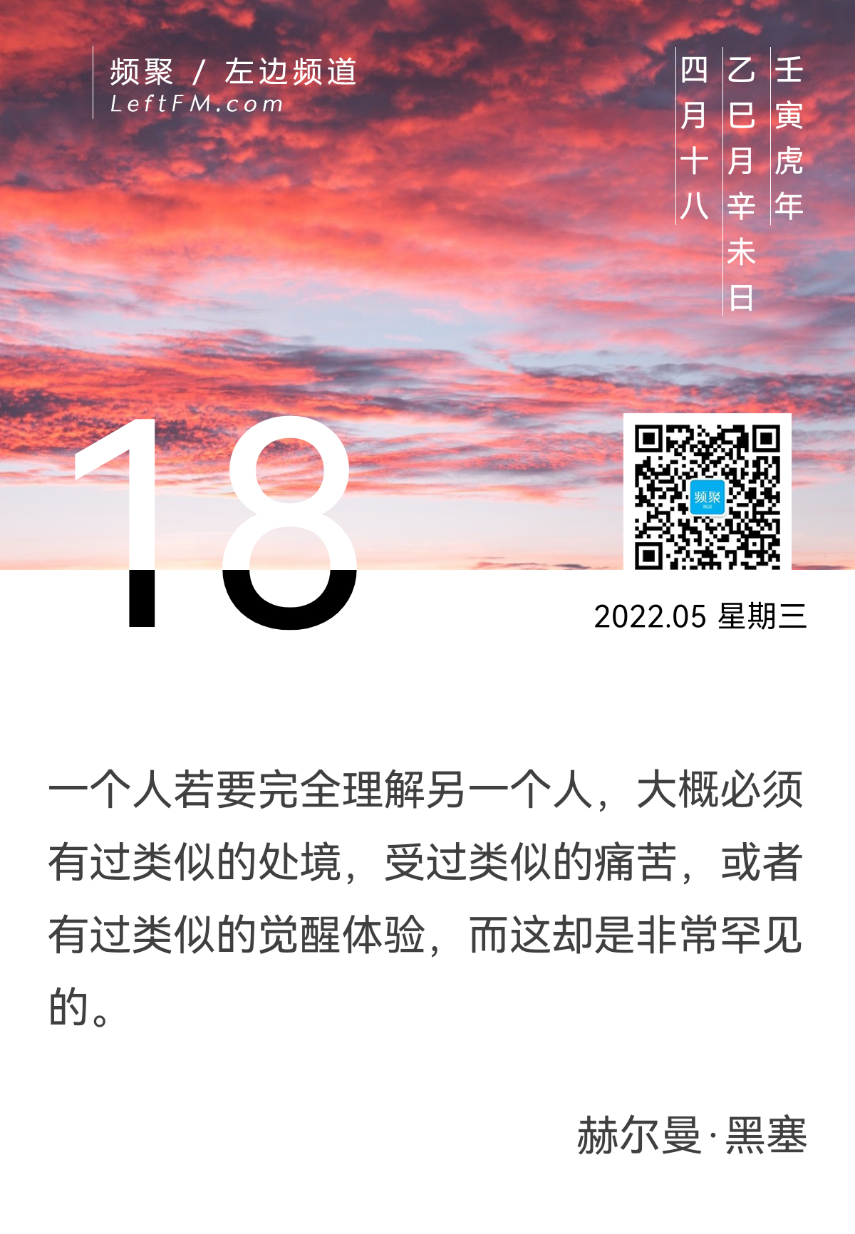 一个人若要完全理解另一个人,大概必须有过类似的处境,受过类似的痛苦,或者有过类似的觉醒体验,而这却是非常罕见的。