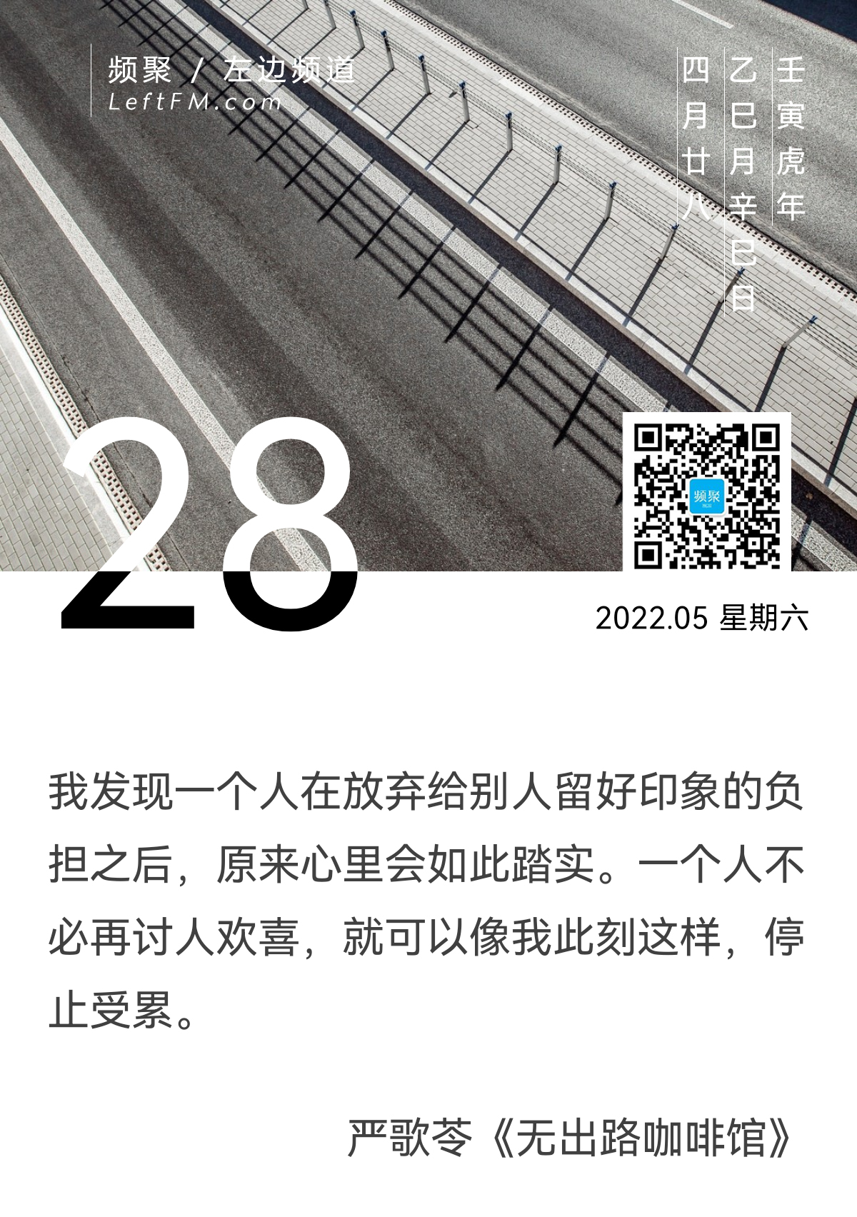 我发现一个人在放弃给别人留好印象的负担之后,原来心里会如此踏实。一个人不必再讨人欢喜,就可以像我此刻这样,停止受累。