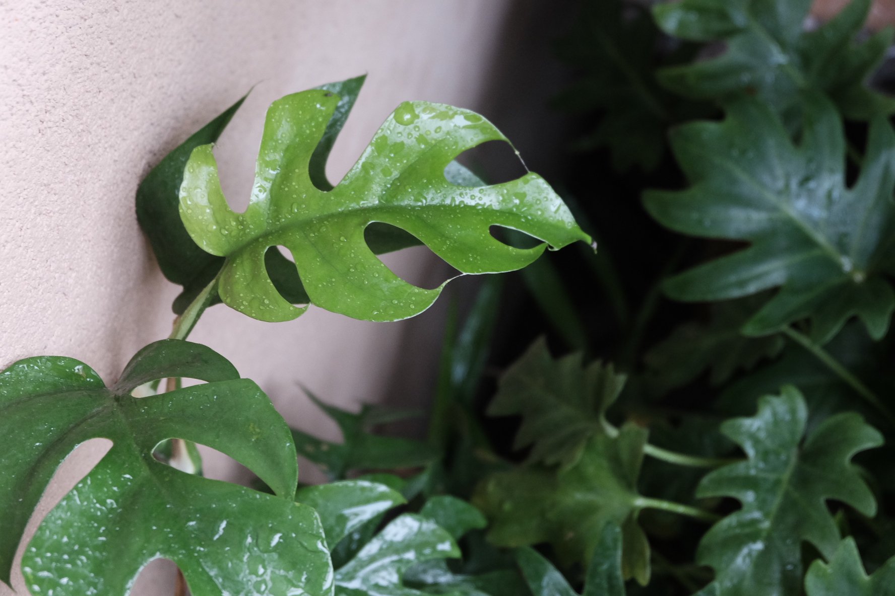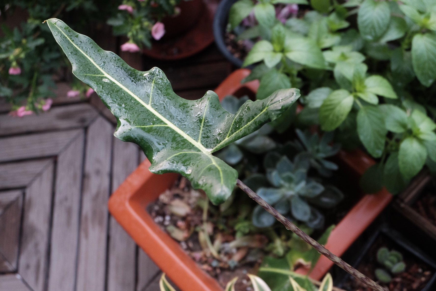 一直以来都觉得姬龟背的叶型自带一种仙气,俗名“飞来凤”也暗合了这种“灵动”的因子。冬日里,生长速度慢。入了夏,置于明亮的散射光环境里,生长速度几乎是每周一片新叶子。先前,放置的位置有阳光的直射,新叶子也黄掉了几片。挪了一个位置之后,状态回升了不少。没有给它搭棕柱,找支撑物,而是给了它一面墙。同时也在担心,入了冬之后,全部挪到室内时,今夏蔓生的这些枝枝叶叶要如何摆布。