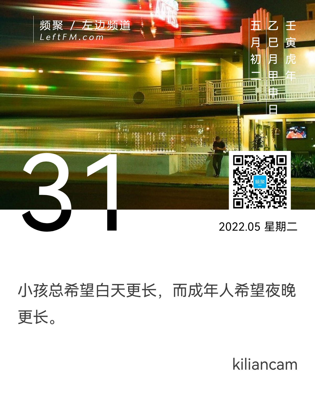 年轻的时候,我体味过“夜”的好。就像王开岭在《精神明亮的人》里写的那样:“深夜意味着什么呢?并不意味着隐匿和逃遁,相反,它意味着显形、解禁、获释;意味着无数事物从角落里走出来,犹如蝙蝠离开了自己的阴影;意味着通往殿堂的一道道幽门被打开;意味着一个人在公众退场后开始登场。”