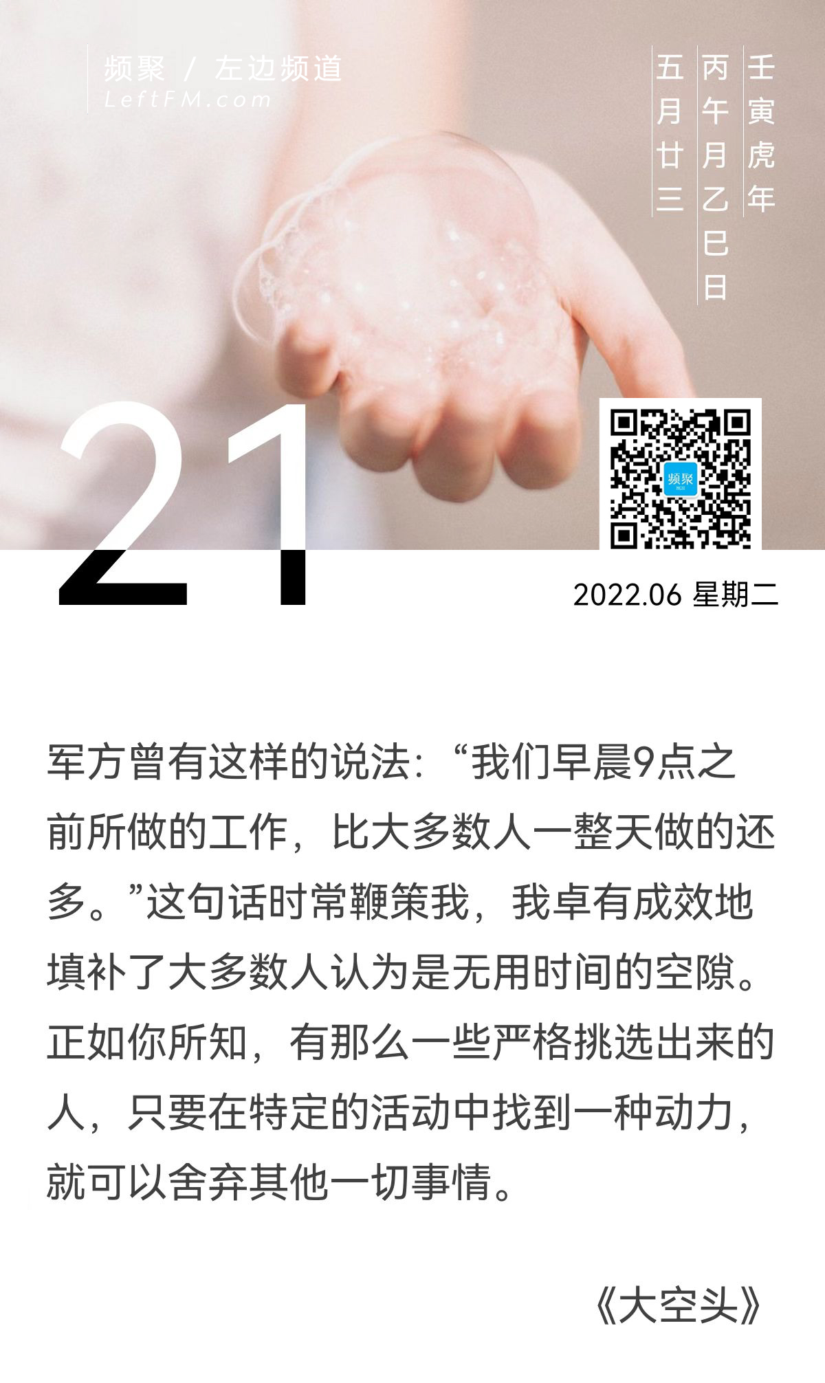 吃好早饭,坐定在办公室,基本八点还不到。以前我都安排自己读点书,做些笔记。这一两年,读书的时间基本都挪到了晚上,早上的时间都用来写#日签#了。