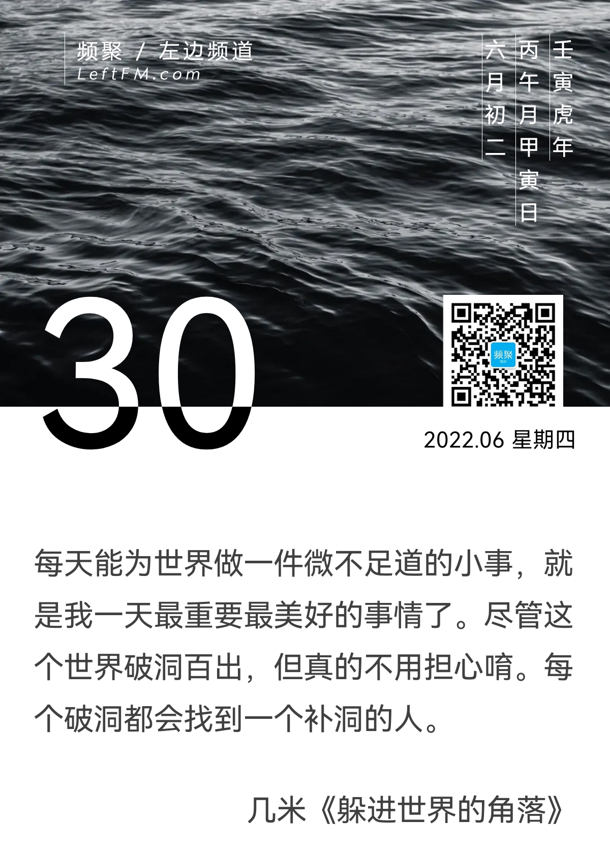 每天能为世界做一件微不足道的小事,就是我一天最重要最美好的事情了。尽管这个世界破洞百出,但真的不用担心唷。每个破洞都会找到一个补洞的人。