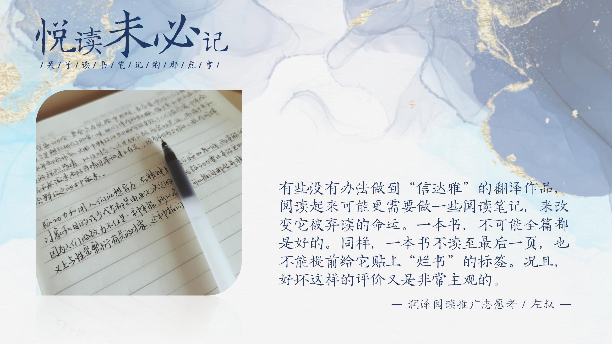 各位读者朋友们,大家下午好!谢谢主办方图书馆的邀请,让我有机会能够站在这里跟大家聊一聊“关于读书笔记的那点事儿”。当然,就像大家看到的PPT那样,在分享这个主题的时候,我稍微“任性”了一下,取了一个标题叫《悦读未必记》。