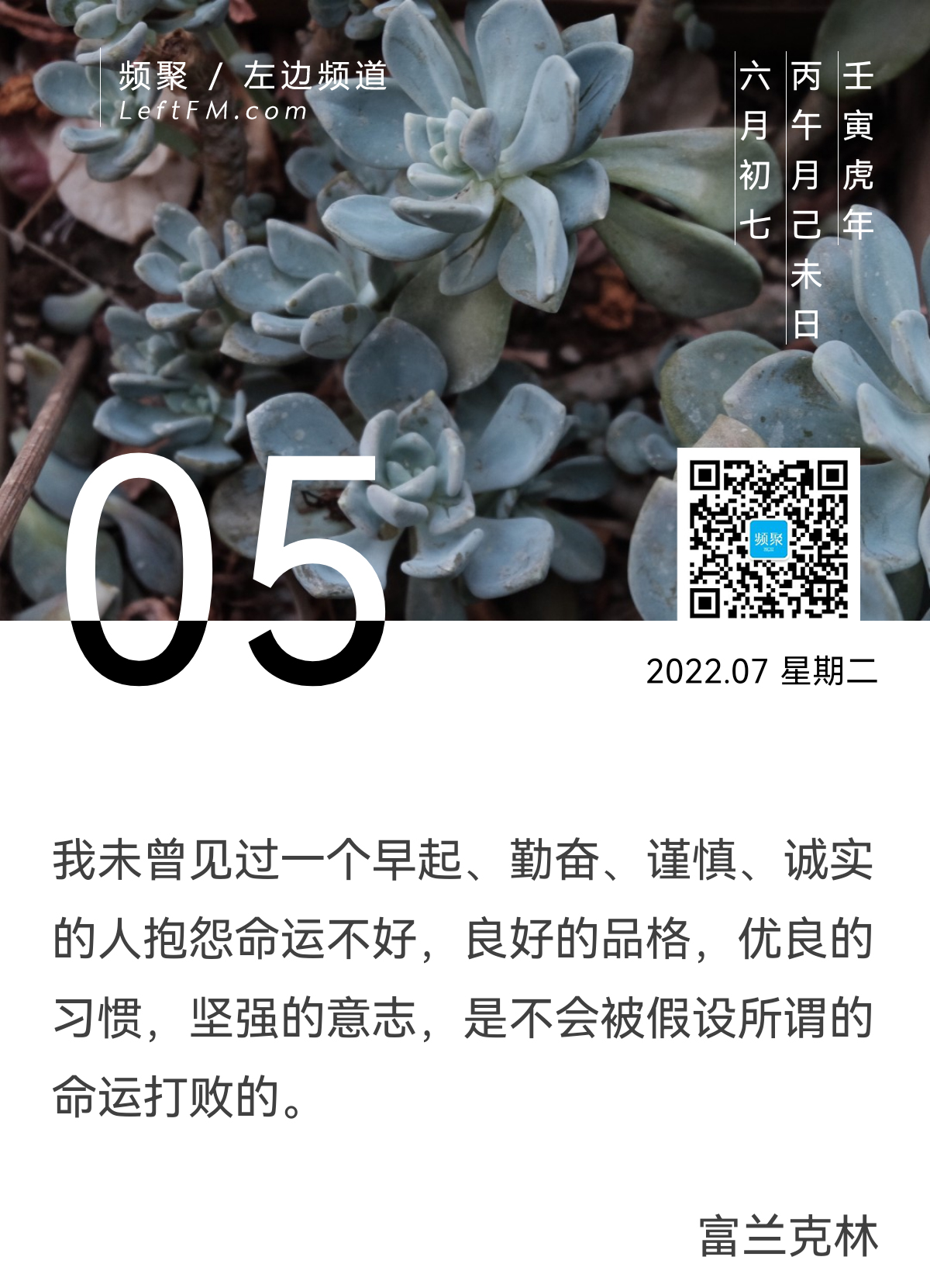 我未曾见过一个早起、勤奋、谨慎、诚实的人抱怨命运不好,良好的品格,优良的习惯,坚强的意志,是不会被假设所谓的命运打败的。
