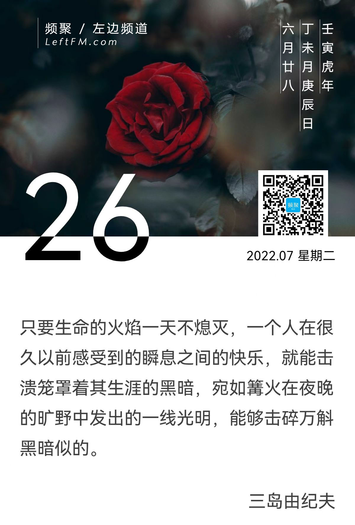 只要生命的火焰一天不熄灭,一个人在很久以前感受到的瞬息之间的快乐,就能击溃笼罩着其生涯的黑暗,宛如篝火在夜晚的旷野中发出的一线光明,能够击碎万斛黑暗似的。