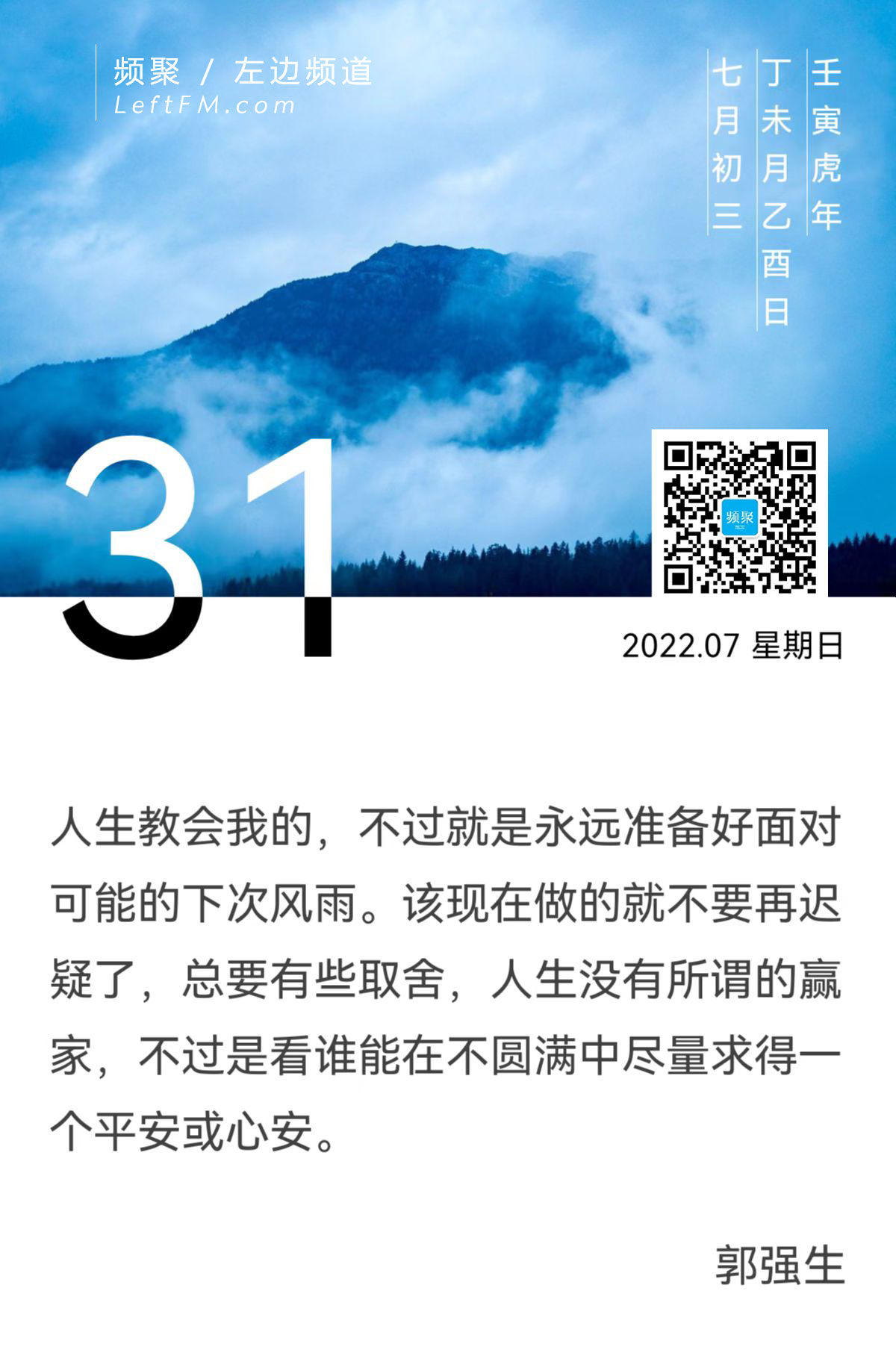 人生教会我的,不过就是永远准备好面对可能的下次风雨。该现在做的就不要再迟疑了,总要有些取舍,人生没有所谓的赢家,不过是看谁能在不圆满中尽量求得一个平安或心安。