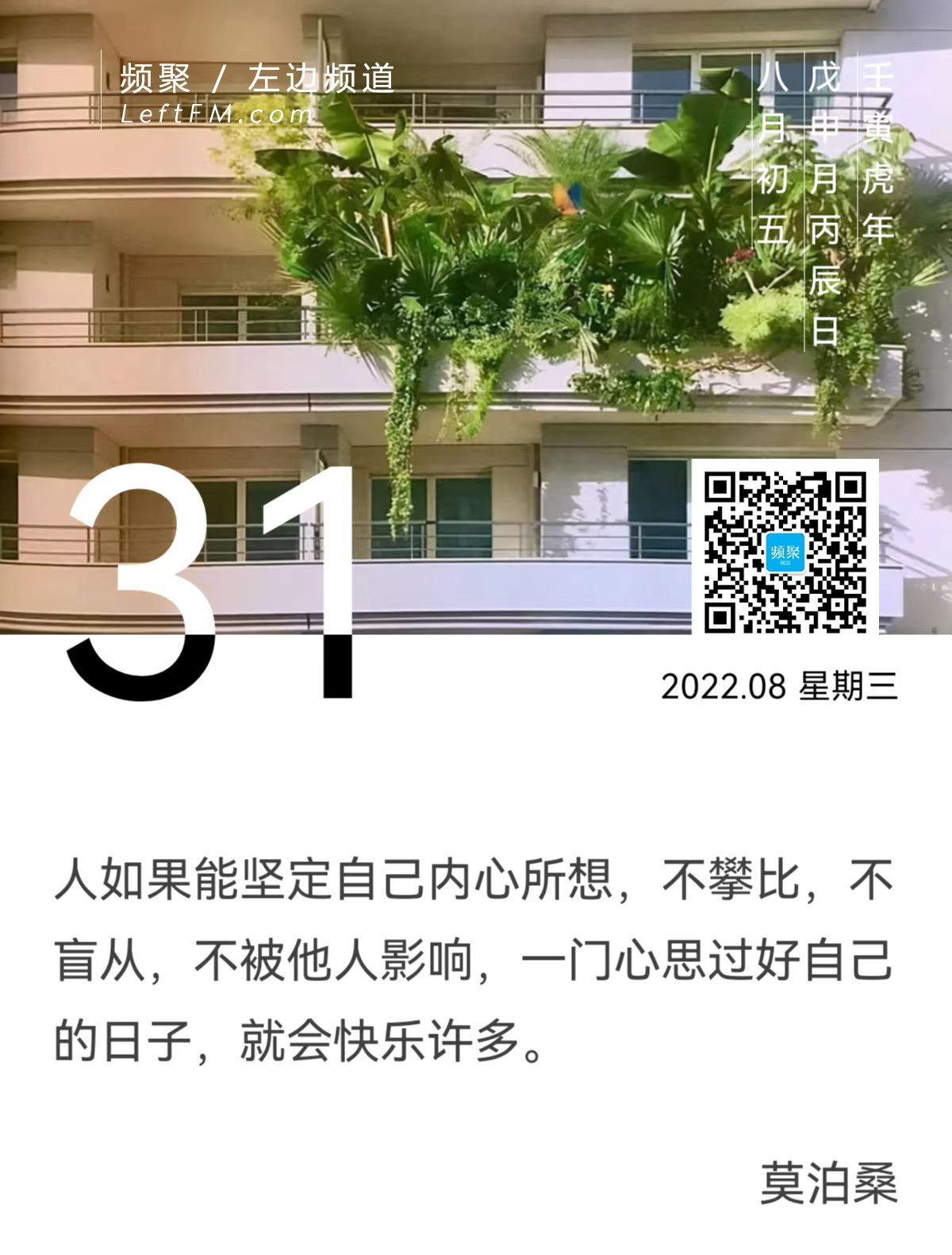 人如果能坚定自己内心所想,不攀比,不盲从,不被他人影响,一门心思过好自己的日子,就会快乐许多。