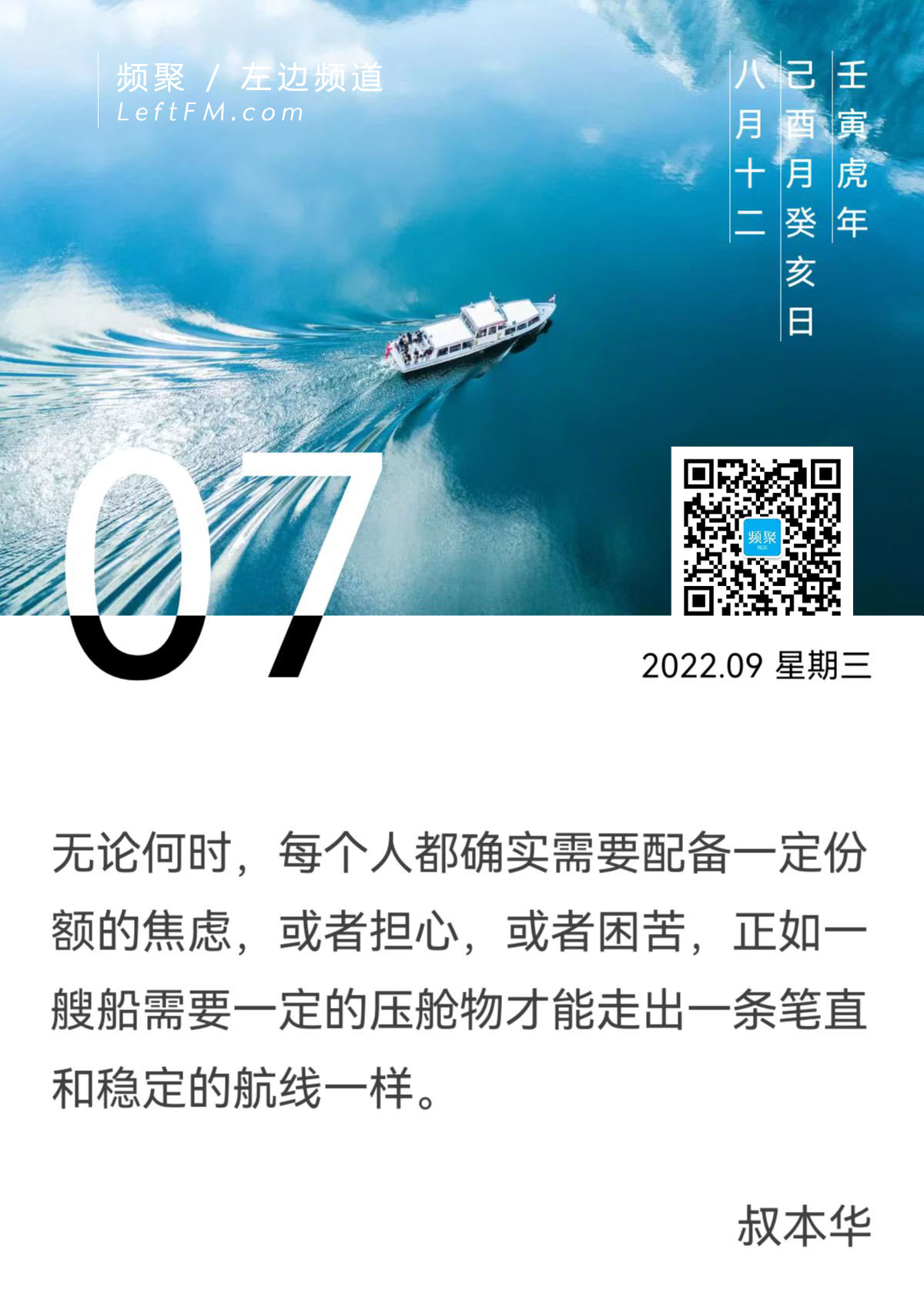 无论何时,每个人都确实需要配备一定份额的焦虑,或者担心,或者困苦,正如一艘船需要一定的压舱物才能走出一条笔直和稳定的航线一样。