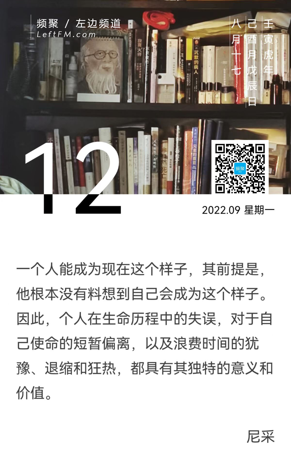 一个人能成为现在这个样子,其前提是,他根本没有料想到自己会成为这个样子。因此,个人在生命历程中的失误,对于自己使命的短暂偏离,以及浪费时间的犹豫、退缩和狂热,都具有其独特的意义和价值。