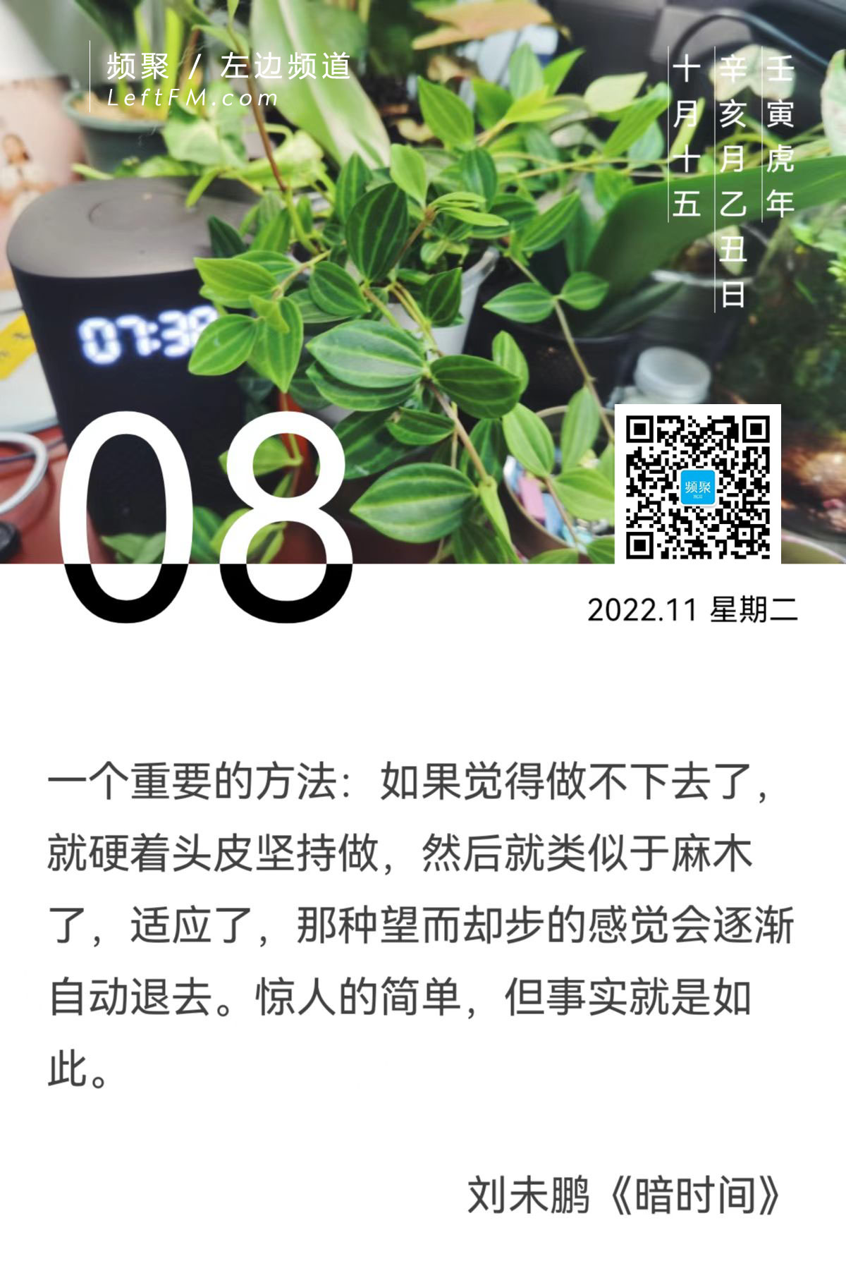 昨天其实是完全有理由“断更”来着的,但是一觉睡醒了之后,想想还是爬起来把#日签#这个坑给填上。因为我知道自己身上的惰性,一旦停下来了,可能要花更大的力气,才能重新捡起来。付出的时间精力成本,远比在那“艰难一刻”扛过去要多出更多。