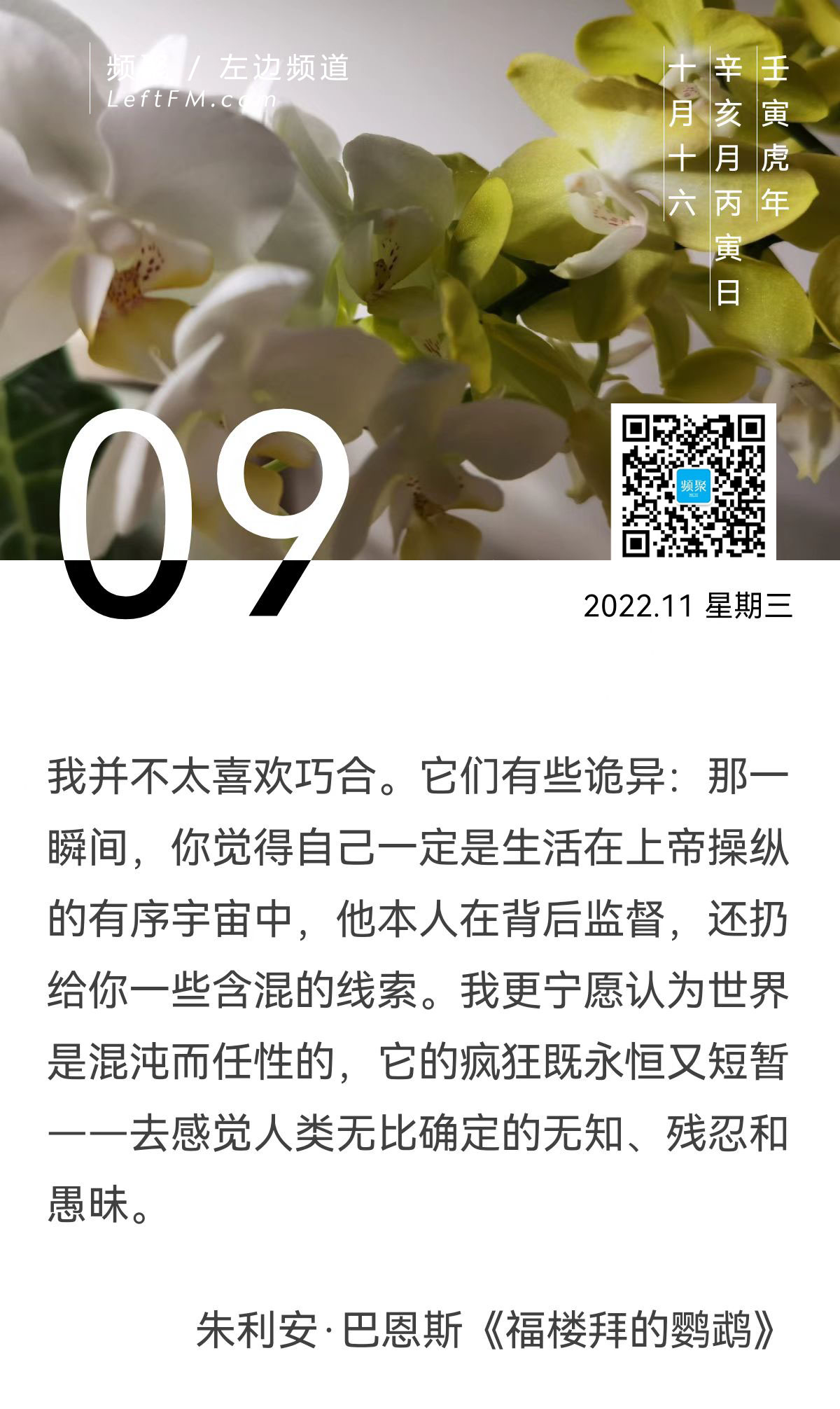 我并不太喜欢巧合。它们有些诡异:那一瞬间,你觉得自己一定是生活在上帝操纵的有序宇宙中,他本人在背后监督,还扔给你一些含混的线索。我更宁愿认为世界是混沌而任性的,它的疯狂既永恒又短暂——去感觉人类无比确定的无知、残忍和愚昧。