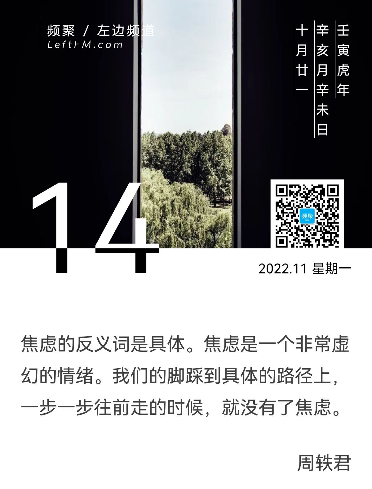 焦虑的反义词是具体。焦虑是一个非常虚幻的情绪。我们的脚踩到具体的路径上,一步一步往前走的时候,就没有了焦虑。