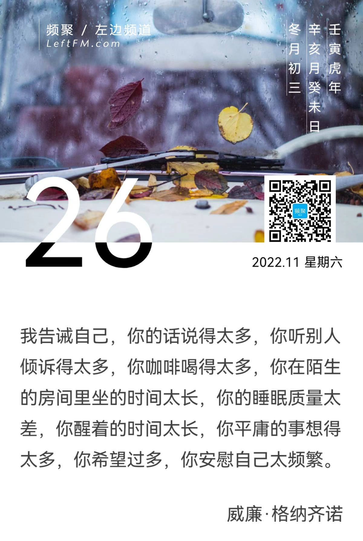 我告诫自己,你的话说得太多,你听别人倾诉得太多,你咖啡喝得太多,你在陌生的房间里坐的时间太长,你的睡眠质量太差,你醒着的时间太长,你平庸的事想得太多,你希望过多,你安慰自己太频繁。