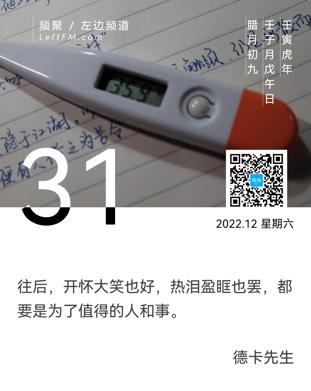 不过万万没有想到,全年最“苟”的状态居然留给了岁末。周遭陆陆续续都“放羊”了,人还“在线”。这一周,主线任务顺利截期了,支线任务也顺道做完了,今天再把填坑任务给了结了,应该可以顺利“下线”了吧。再不“下线”,就真得不合群了。
