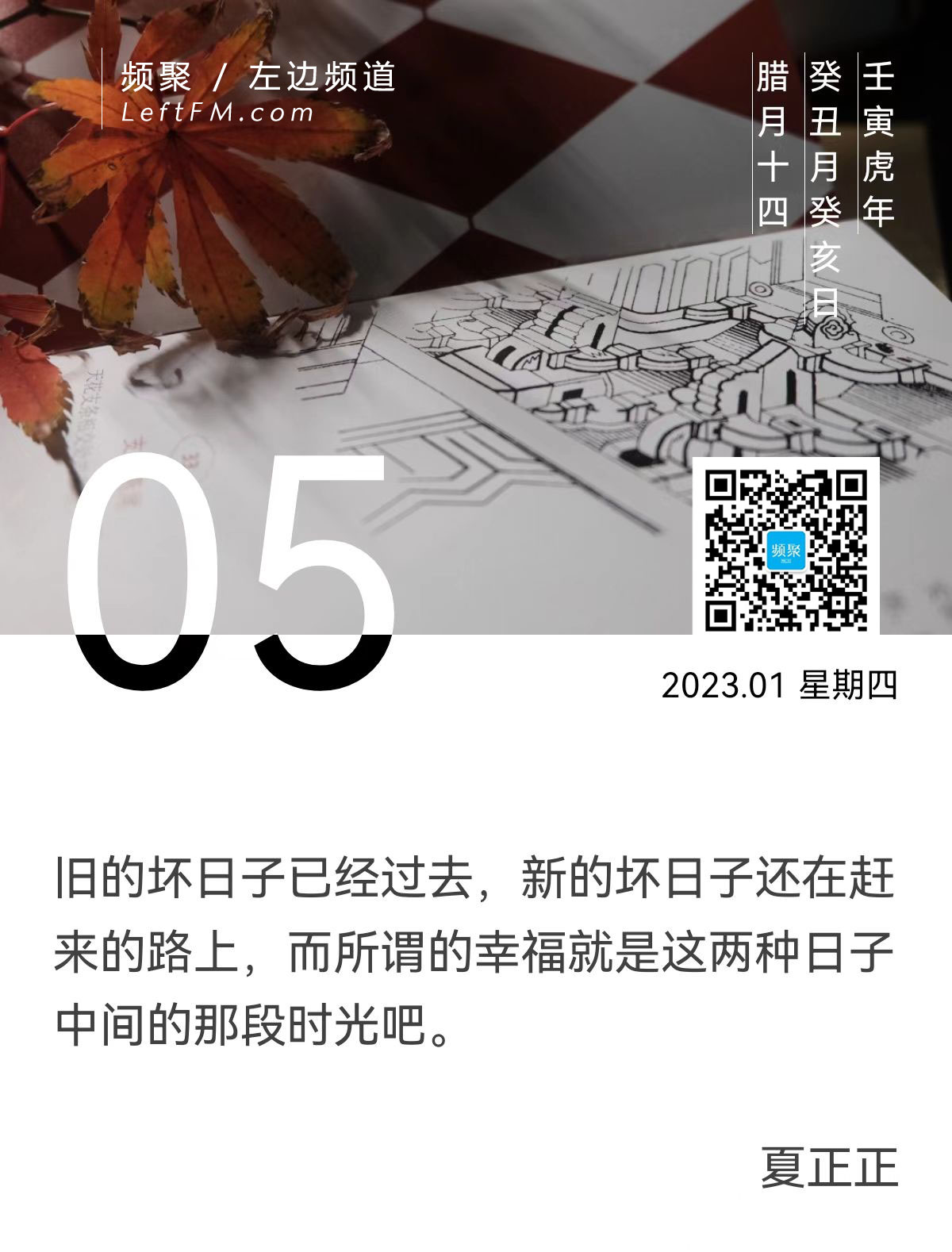 旧的坏日子已经过去,新的坏日子还在赶来的路上,而所谓的幸福就是这两种日子中间的那段时光吧。