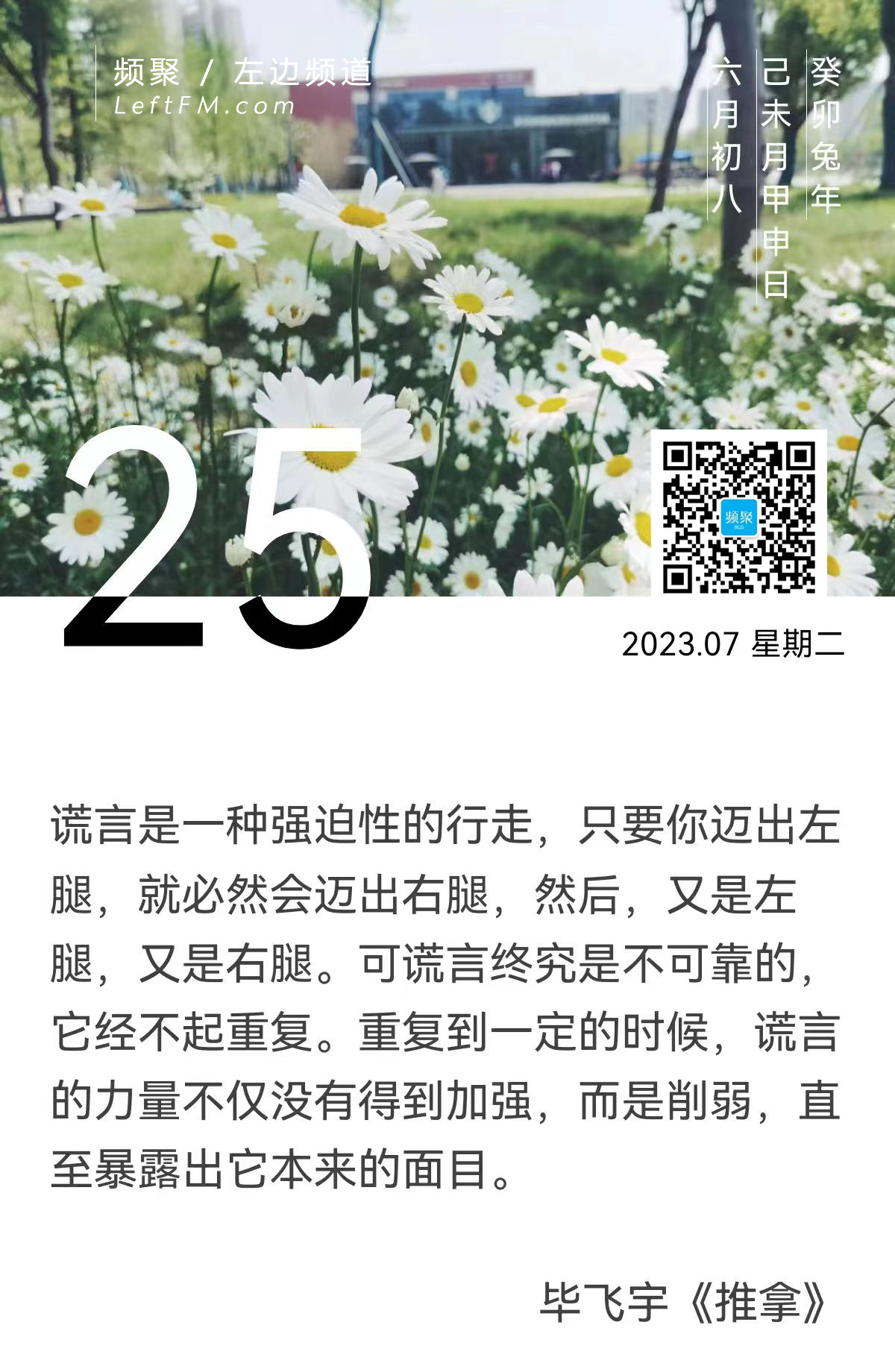 谎言是一种强迫性的行走,只要你迈出左腿,就必然会迈出右腿,然后,又是左腿,又是右腿。可谎言终究是不可靠的,它经不起重复。重复到一定的时候,谎言的力量不仅没有得到加强,而是削弱,直至暴露出它本来的面目。——毕飞宇 《推拿》