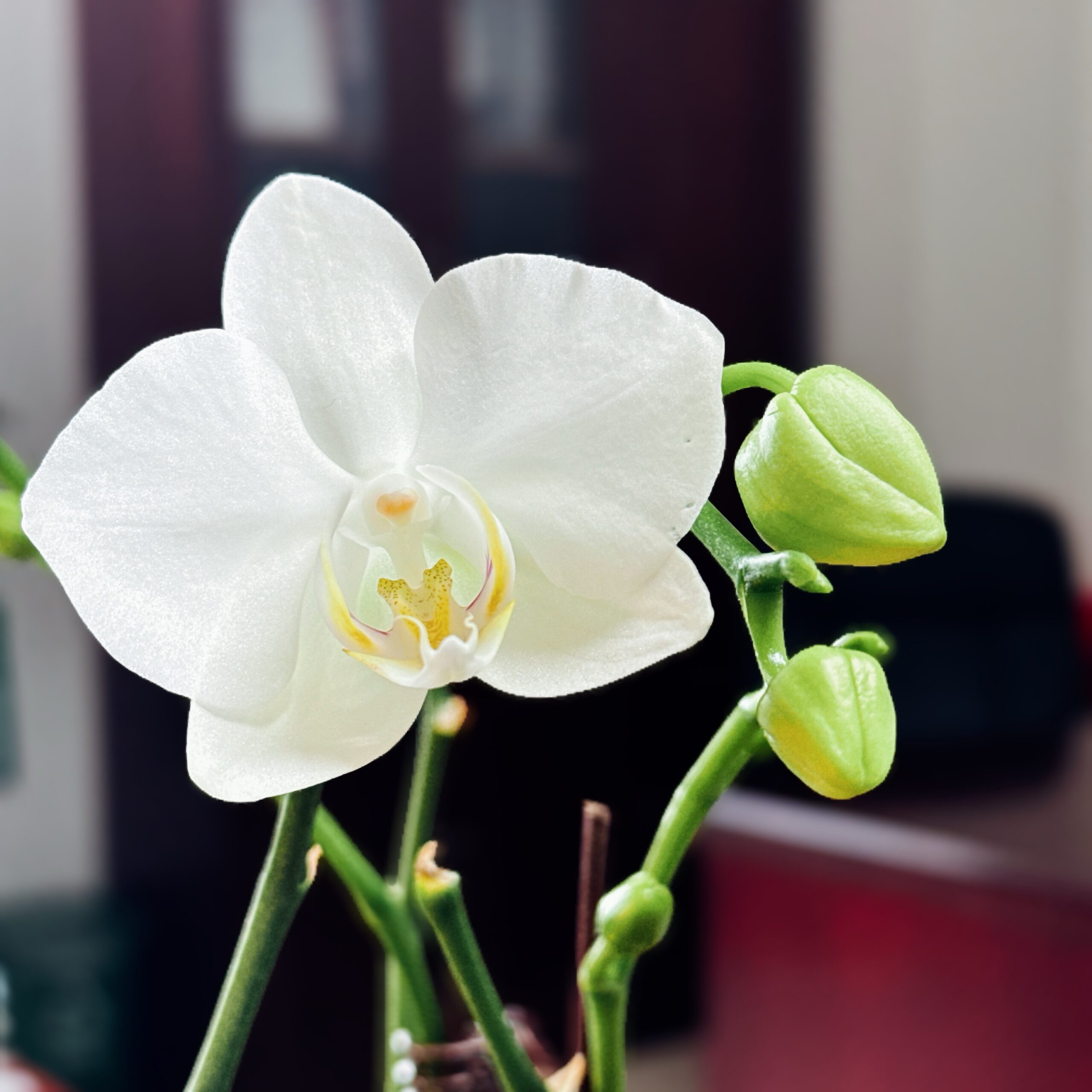 阿玛这个品种,真得算是勤复花的蝴蝶兰了,前一波花败了之后,花梗我都没有舍得剪,两个月内又陆陆续续复花。我喜欢白花,比较仙儿。