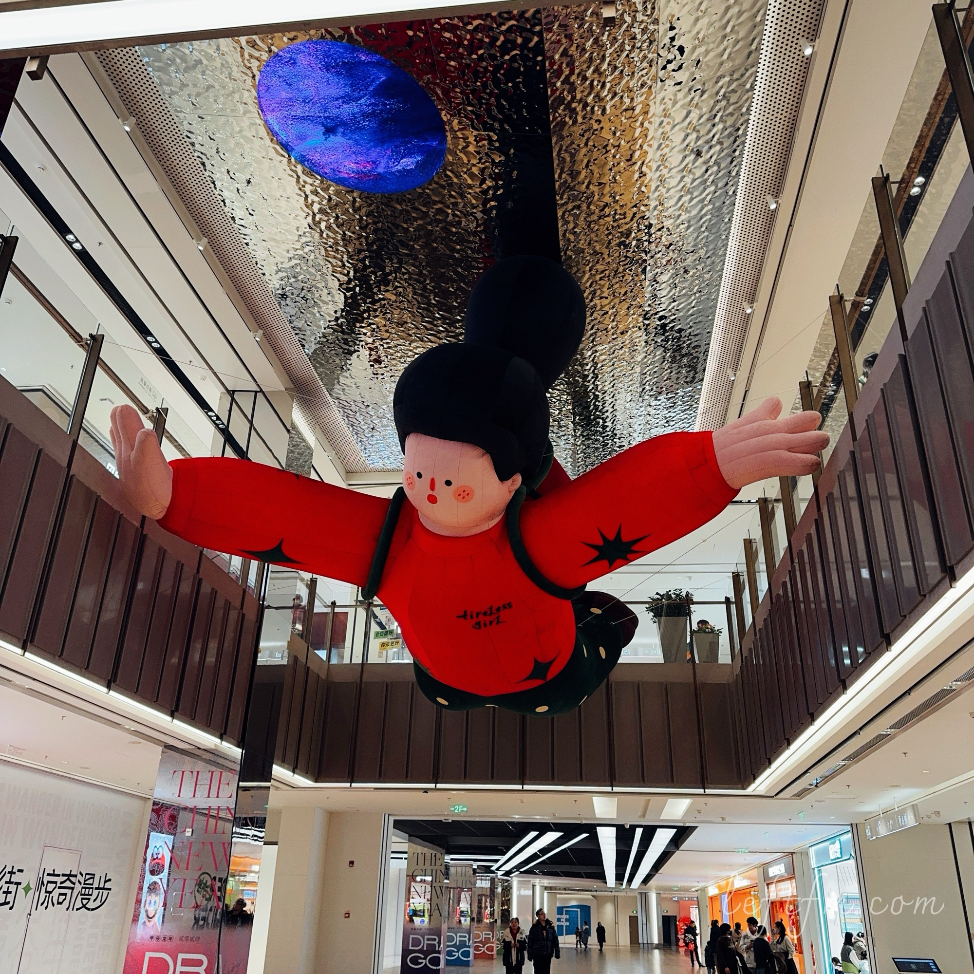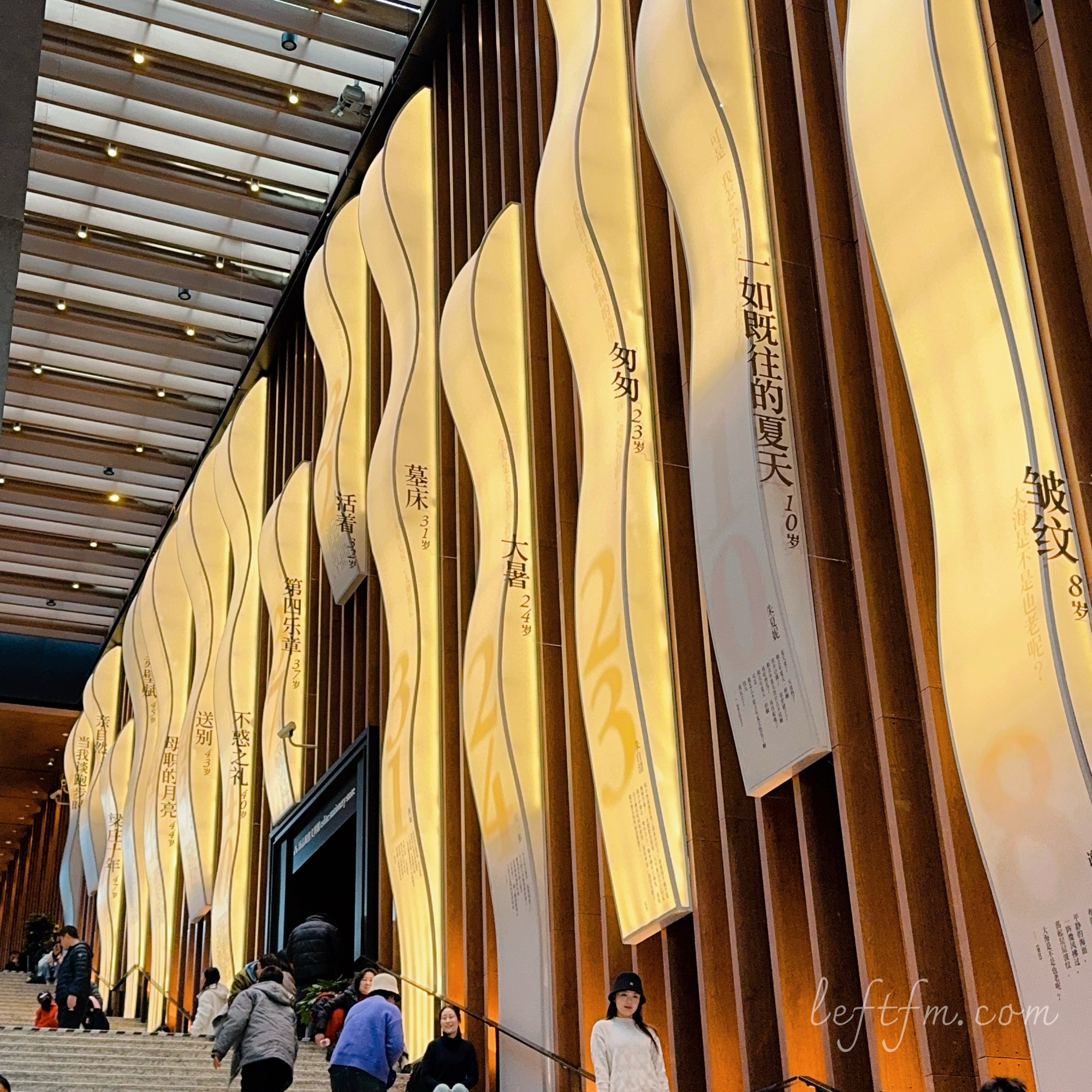 这个台阶,包括下面一张的顶棚,是定期会更换的,有时候会做成书脊状,有时候会成书签状,会出现在很多人照片的打卡之中,当然还两个兔子形状的玩偶。场域环境设计,越来越多地开始考虑游客参与传播的功能,苏州诚品这个领域,已经为我们打好了样。既有一定装饰上的功能性,同时也兼具美感和传播的功效,是值得学习的。