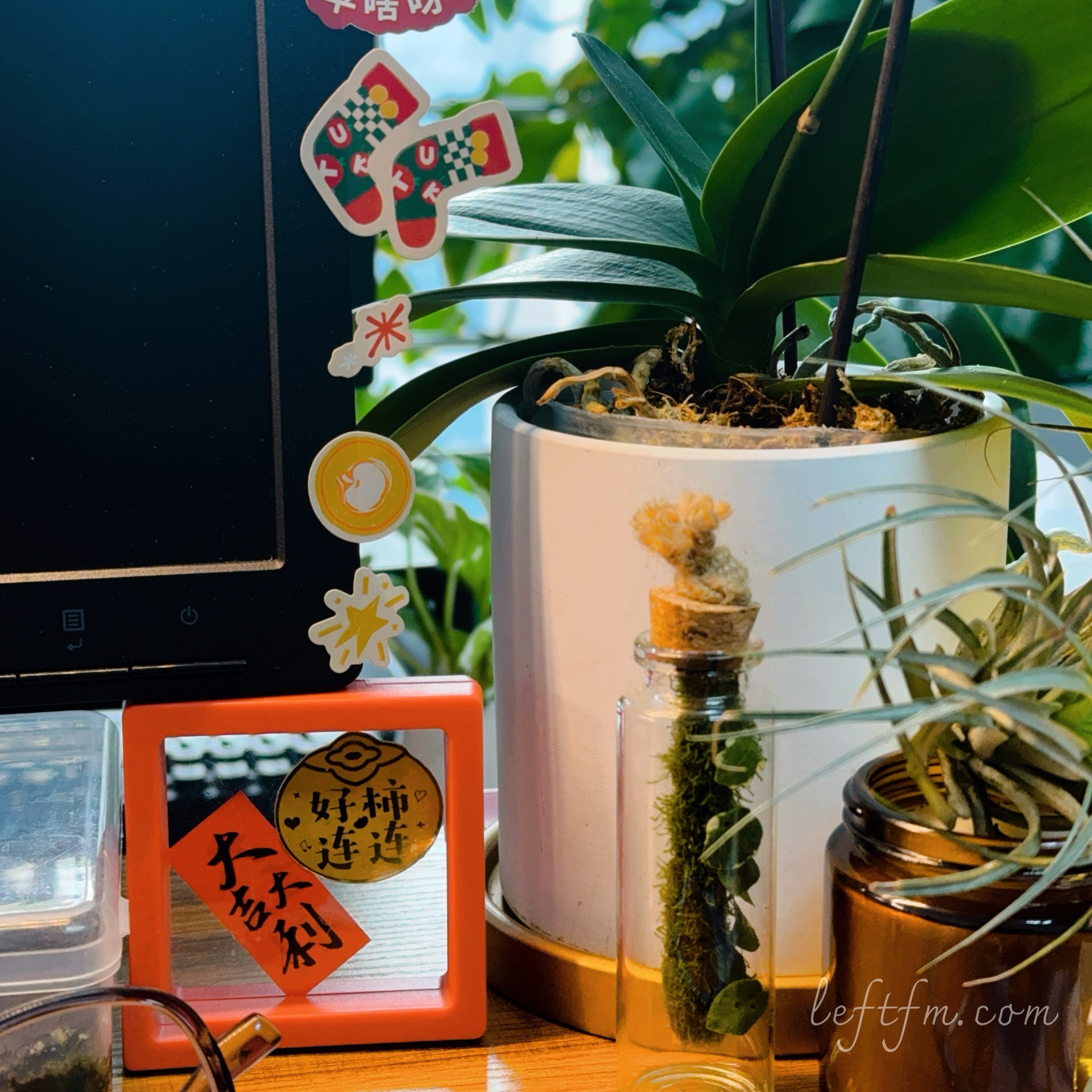 悠长假日,中途也没有抽出时间,回办公室看看它们。新春复工,“老演员”们的状态都好极了。花依然开着,鱼依旧活着。担心白天没有人在办公室开空调,持续低温导致蝴蝶兰消苞的问题,仅仅也就是一两朵而已,并不是特别明显。