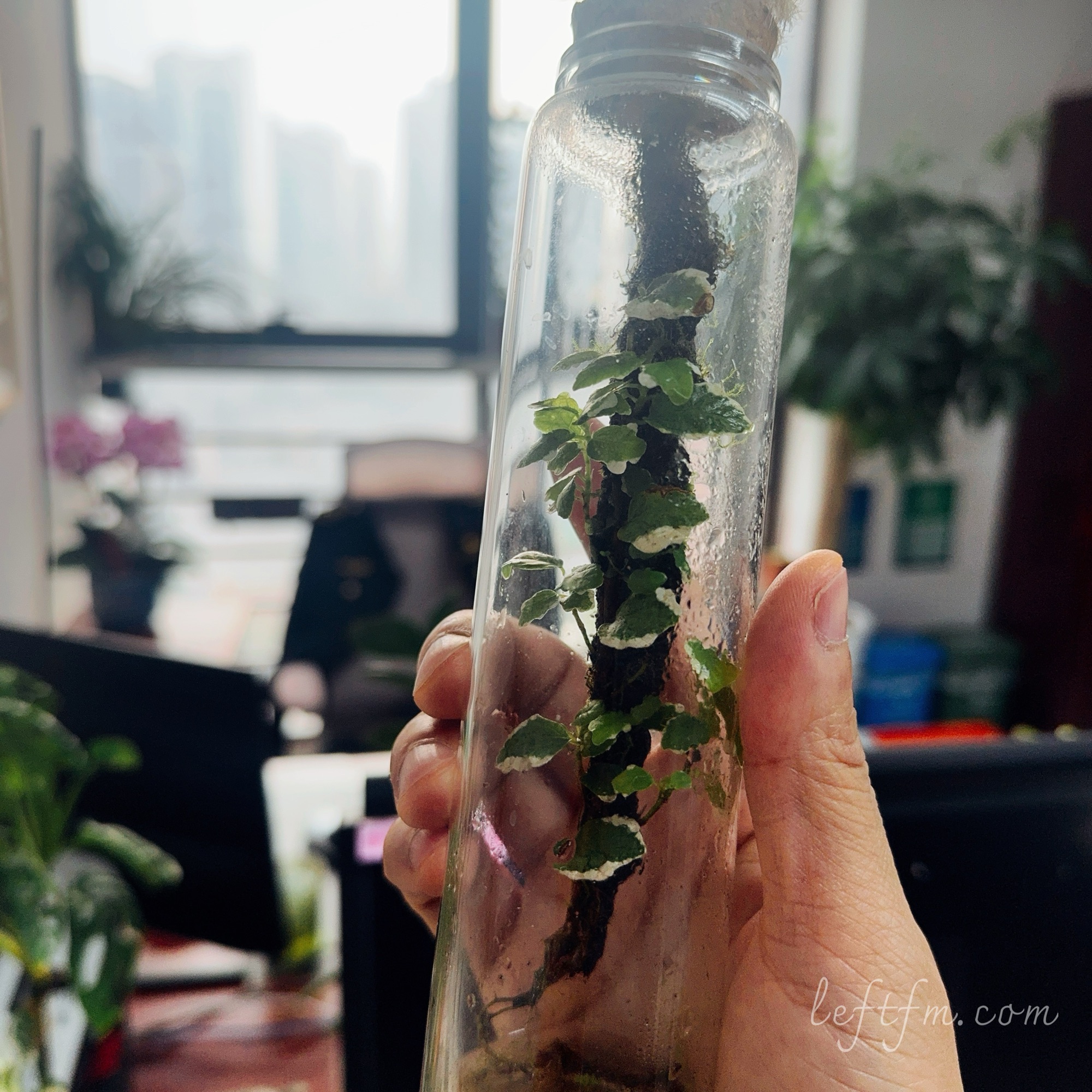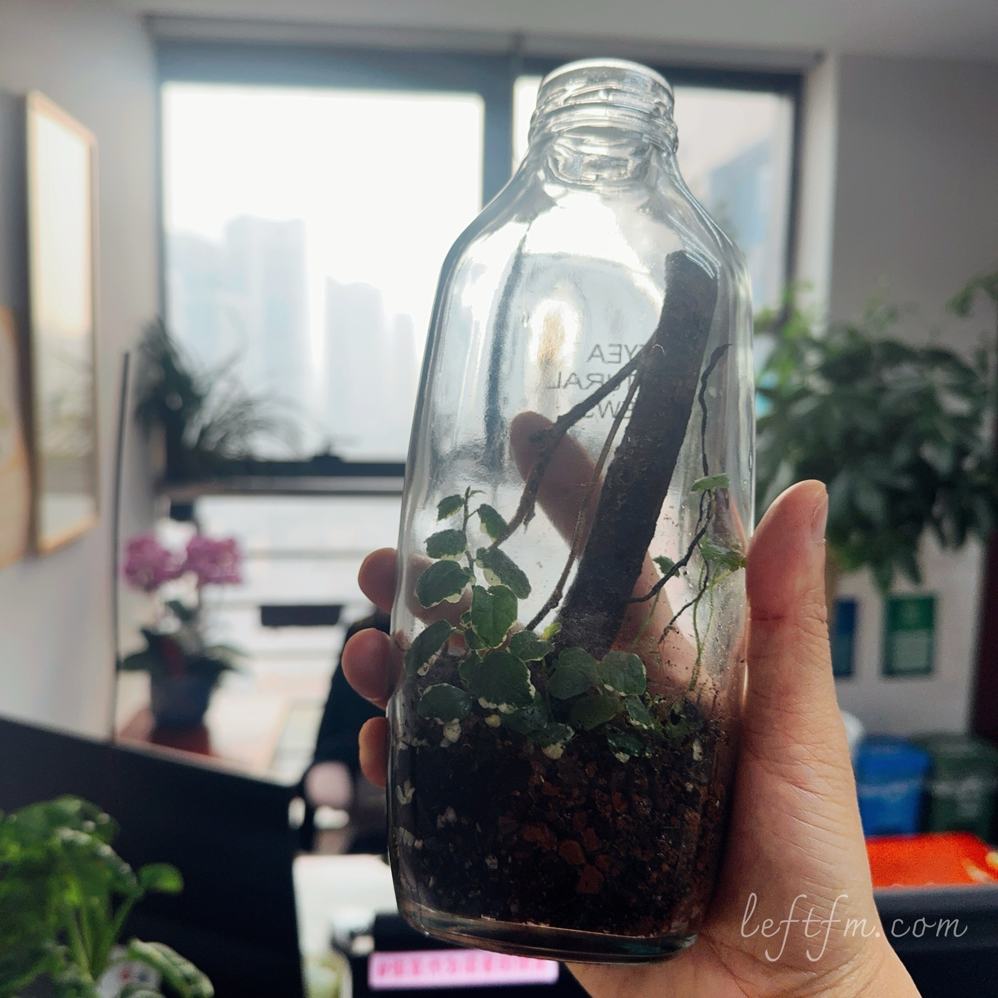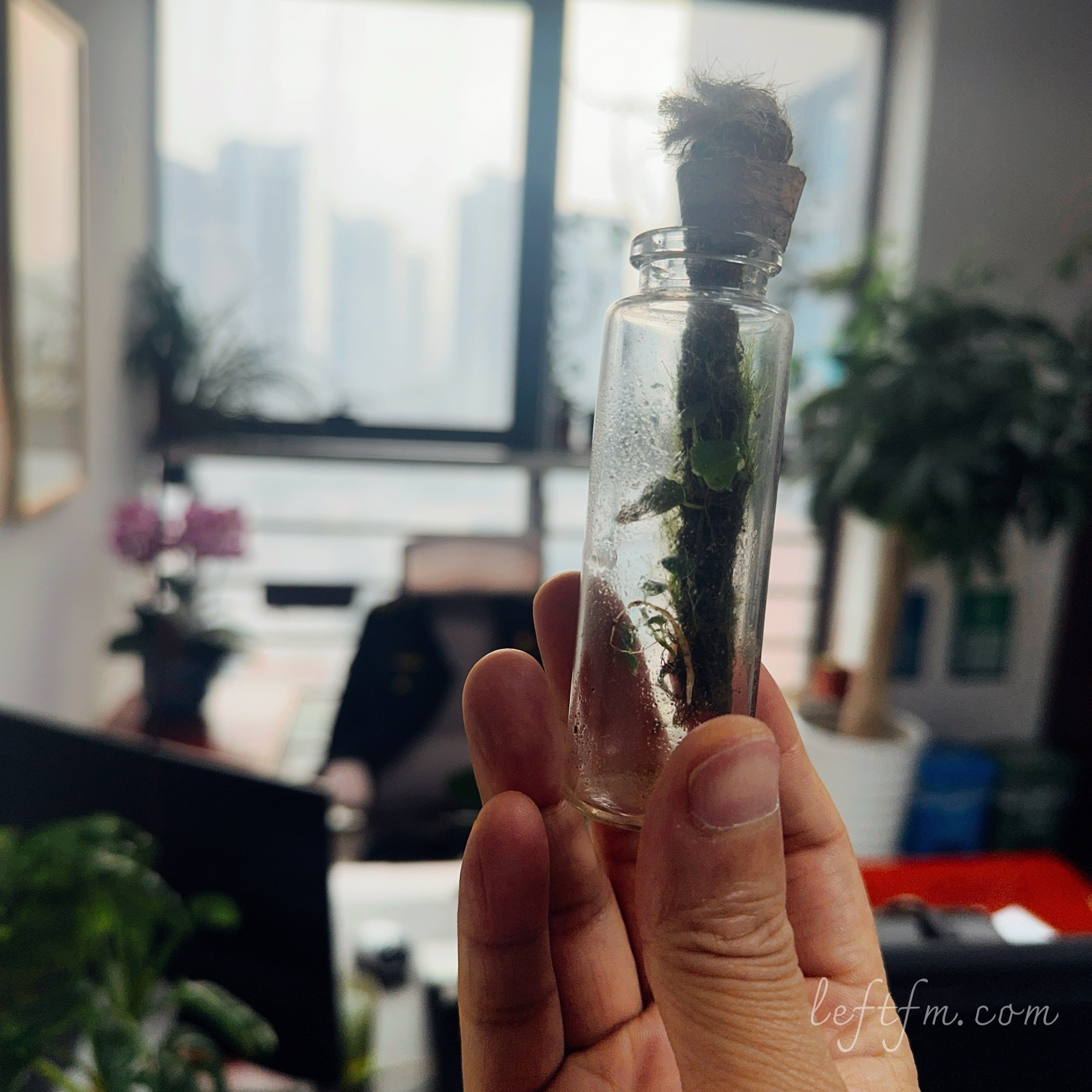 DJ左叔@新浪微博:说起养植物,总有人跟我说没时间照顾,没有地方养,太占地方了。其实小小一瓶放在电脑显示器边上很赏心悦目的。