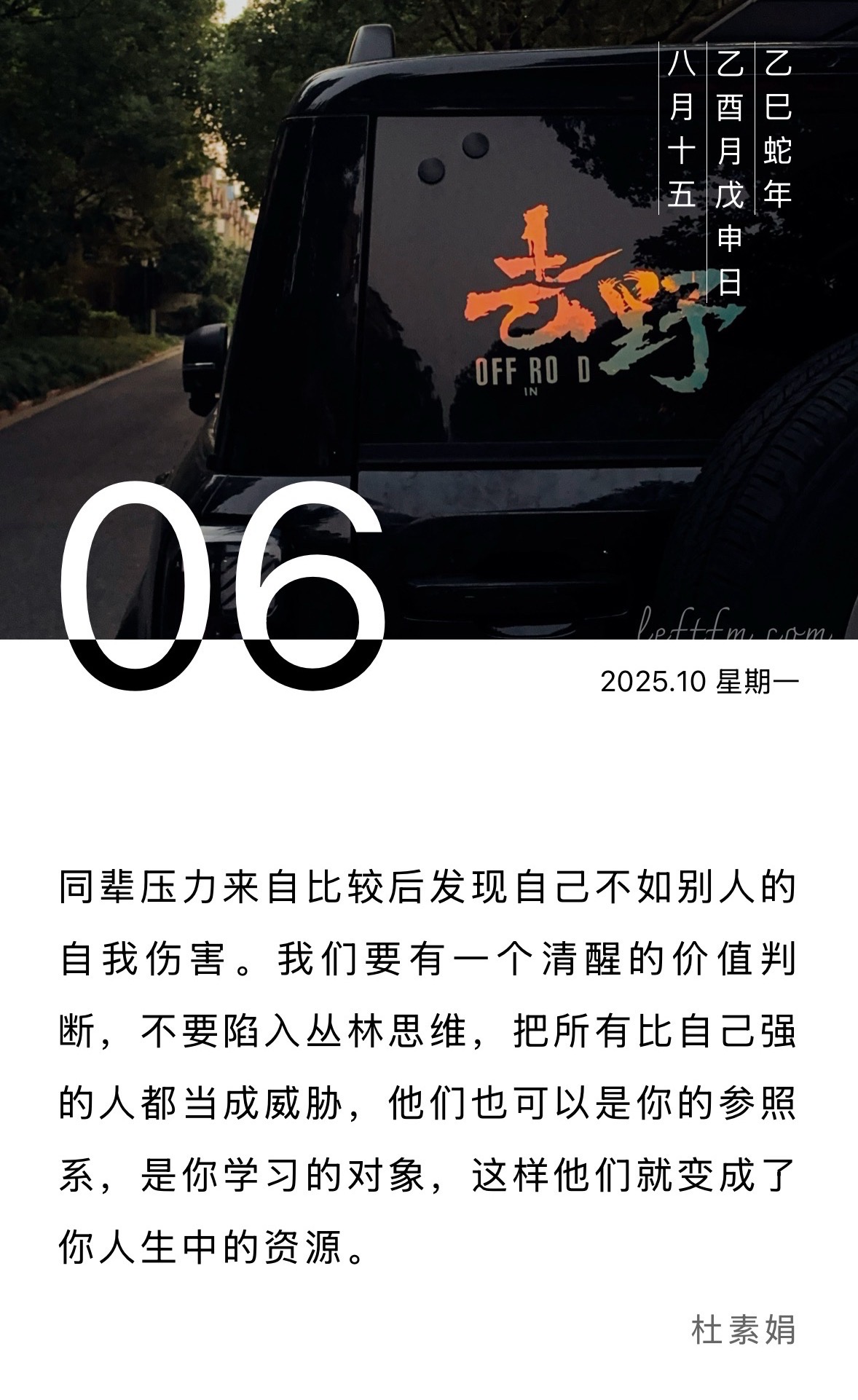 嗯!其实懂不懂得“别别苗头”,找一找“参照系”,情不情愿“甘居人后”,去当个“小透明”,既是一种“超然”的状态,也是一种“澄明”的心态。
