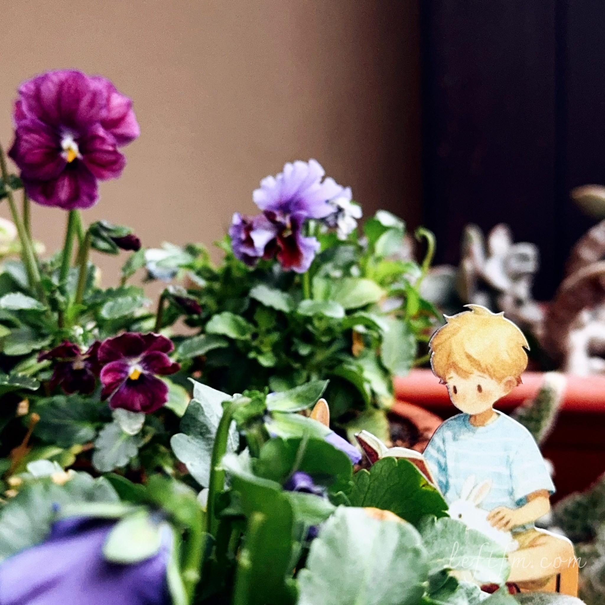 角堇:对温度和紫外线非常敏感,花色变化非常大。“心跳”虽然出不了“中毒” 的效果,但也是好看的。另一株,低照度时是灰绿复古色的,强照度条件下是紫蓝色系的。同一场景下,可能就有可能出现,同一株角堇深冬一款花色,初春一款花色。这就是它的乐趣所在吧。