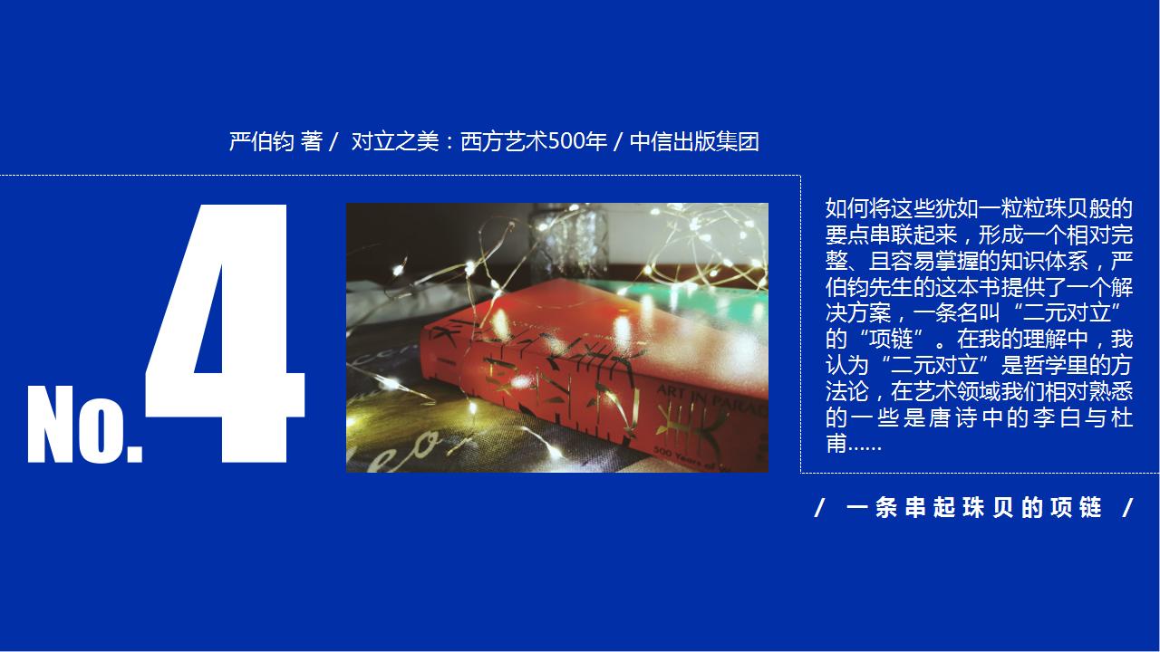 无论是西方艺术,还是500年,这两个概念都是极大的。在这两个极大的概念里面,既有达芬奇、塞尚、凡·高、毕加索、杜尚、莫扎特、贝多芬等等灿若星辰的大师,同时也有宗教、政治、军事、资本、经济、哲学、文学等社会肌理脉络。所以说想要透过一本近600页的书,其实很难有机会完全“讲透”的。如何将这些犹如一粒粒珠贝般的要点串联起来,形成一个相对完整、且容易掌握的知识体系,严伯钧先生的这本书提供了一个解决方案,一条名叫“二元对立”的“项链”。在我的理解中,我认为“二元对立”是哲学里的方法论,在艺术领域我们相对熟悉的一些是唐诗中的李白与杜甫,浪漫主义和现实主义的两座高峰,适用“二元对立”的方法论也是可行的。【了解更多】